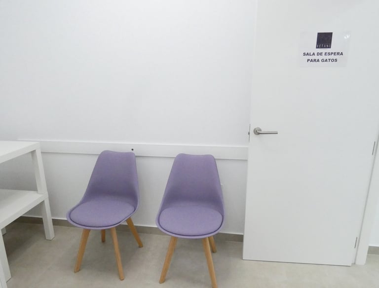 Para asegurar la comodidad, tranquilidad y manejo sin estrés de nuestros pacientes felinos, disponemos de una sala de espera exclusiva para ellos, con ambiente tranquilo, paso directo a consulta y difusor de feromonas.